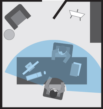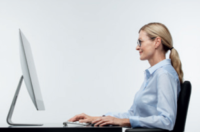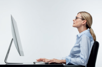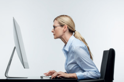 - U buigt zich naar voren om een duidelijker beeld te krijgen op uw scherm.