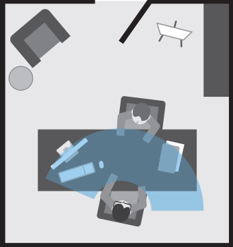 Interactie met personen aan de andere kant van het bureau wordt mogelijk.